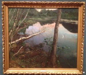 Og eksemplerne slog mig: Det er helt sådan, jeg selv vælger vinkler og beskærer motiverne! Ikke så suverænt, naturligvis ikke. Men se her et japansk-inspireret sommernat-billede af den norske maler Eilif Peterssen – og et foto, jeg tog i Godthåb tæt ved Aalborg i julen 2016: