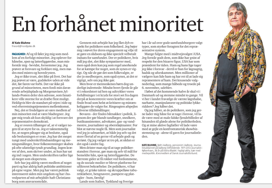 Jeg er ikke truet, slet ikke på livet. Det har jeg prøvet at være, gudskelov uden at vide det, før faren var forbi. Det var ikke på grund af minoriteten, men fordi min daværende arbejdsplads og Morgenavisen Jyllands-Posten deler den adresse, som fanatikere ville storme for at dræbe flest muligt. Heldigvis blev de standset på vejen i tide og ved efterretningstjenesters mellemkomst.