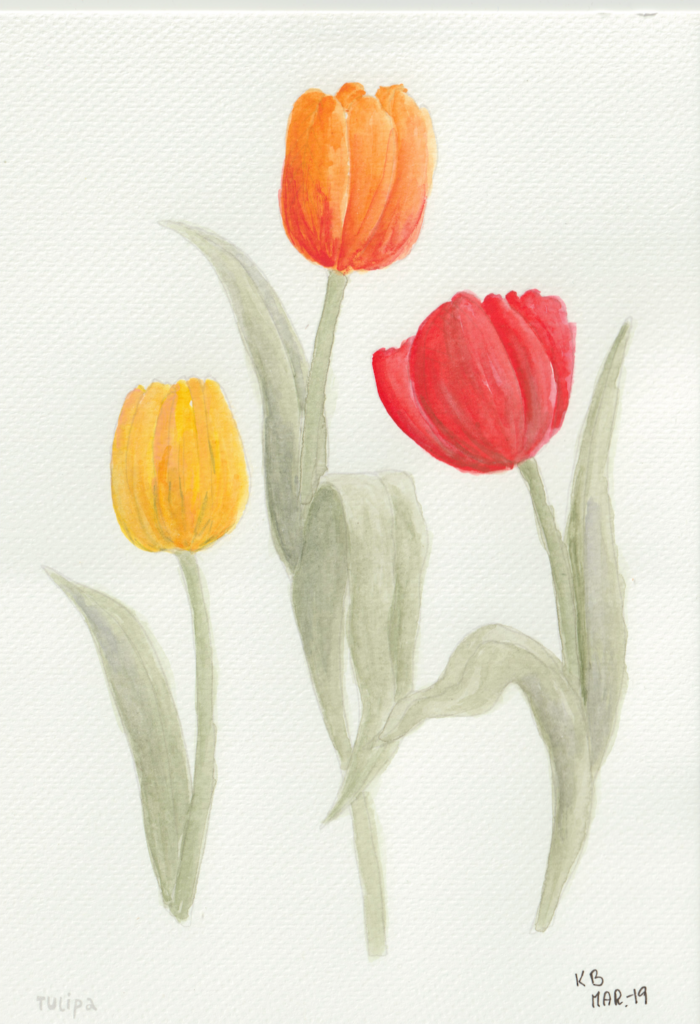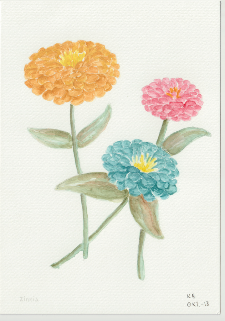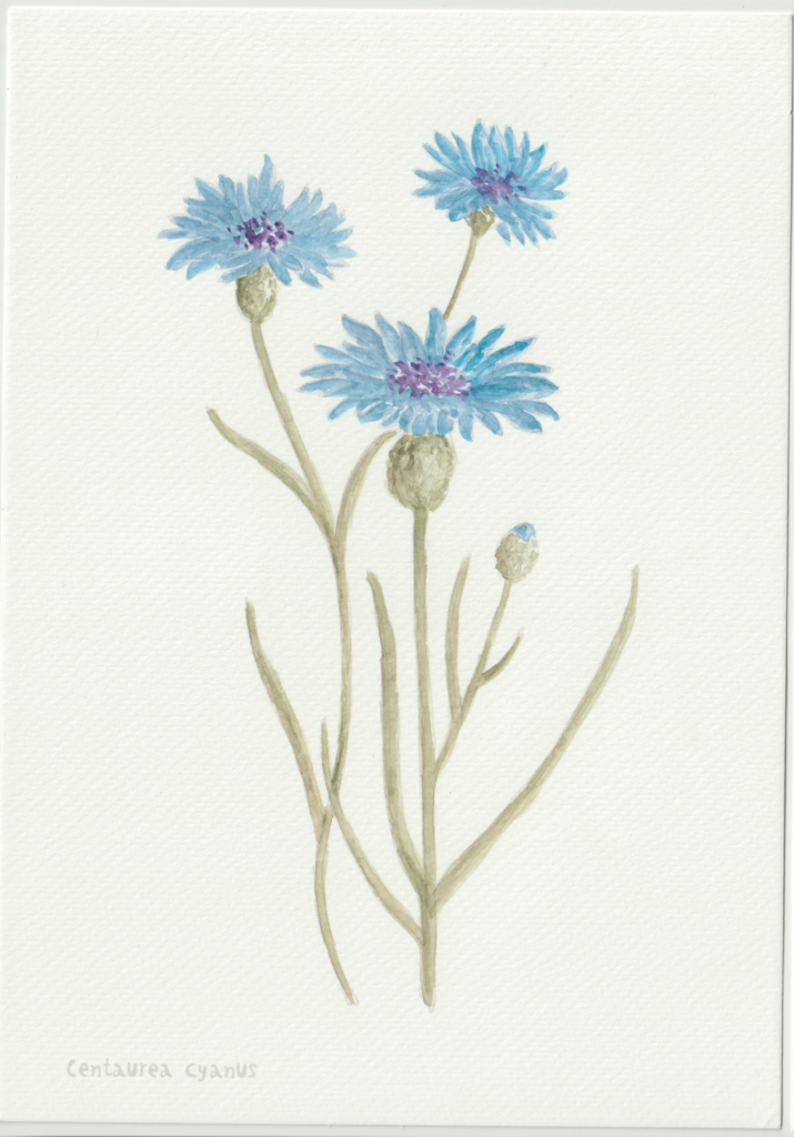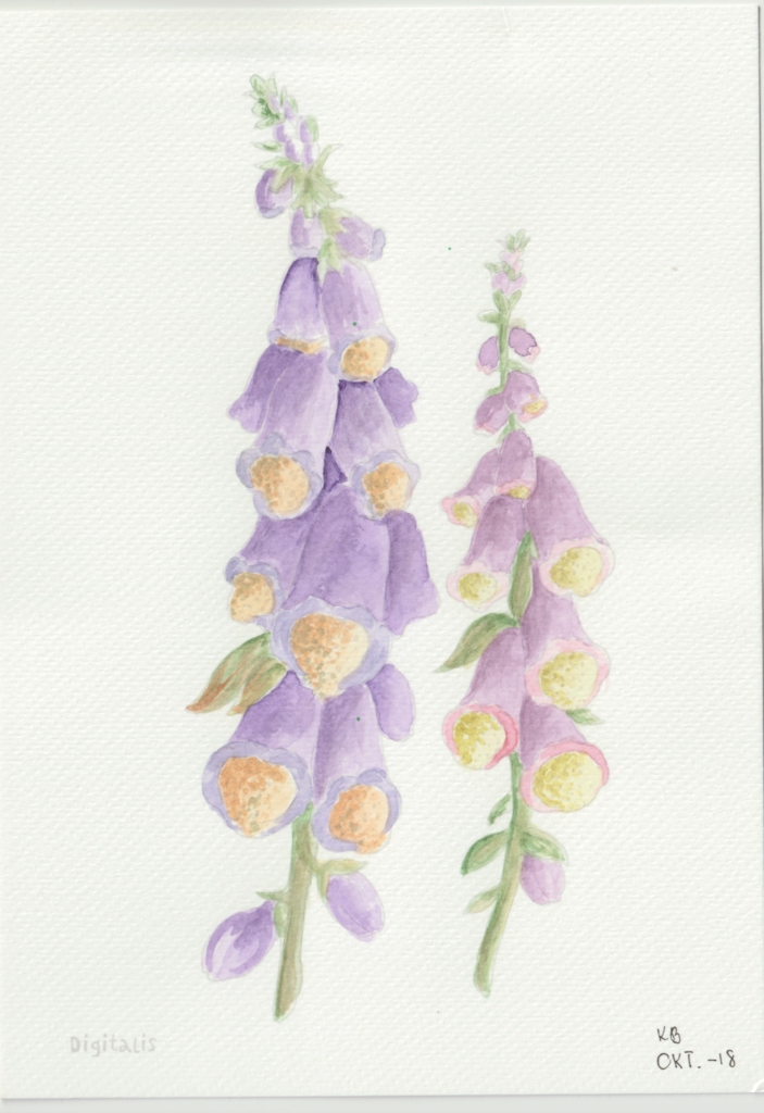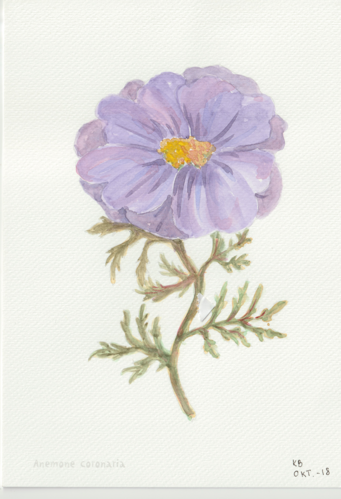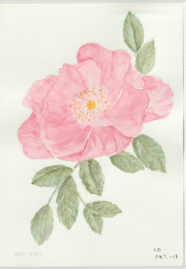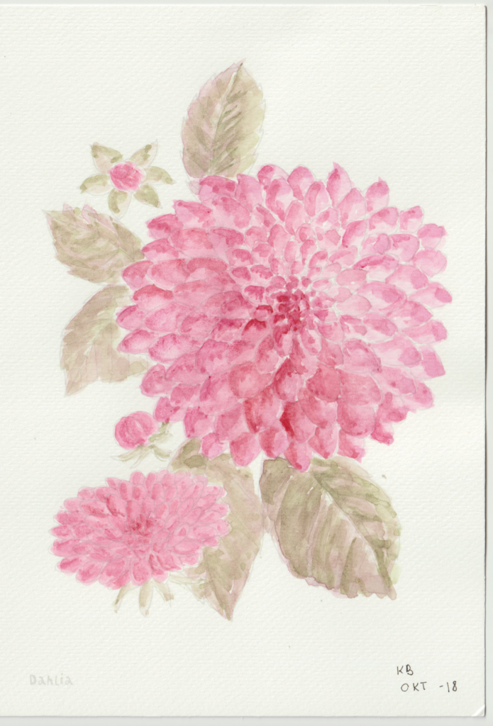I en periode var jeg gået en smule træt i landskabsbillederne og ville gerne hvile mig med at male noget andet. Så faldt jeg over en lille akvarelmalebog i en Tiger-butik. Og så malede jeg blomsterbilleder, når jeg sad med hyggeholdet på Gundorfslund.
