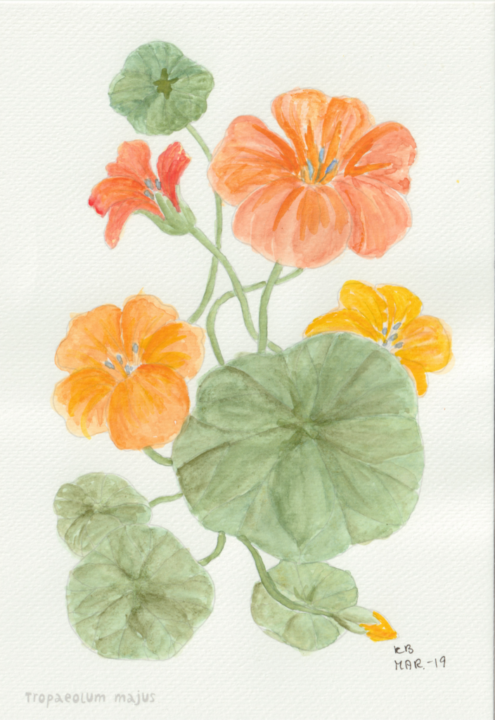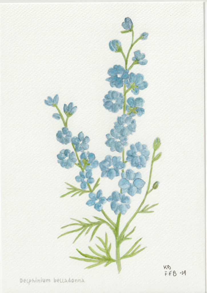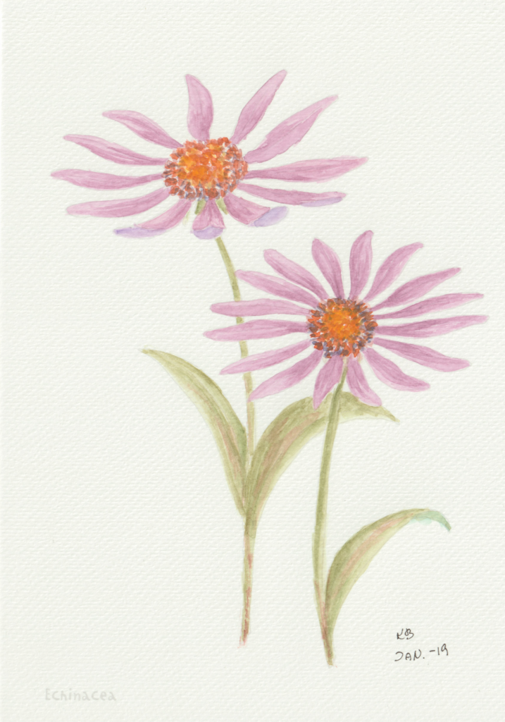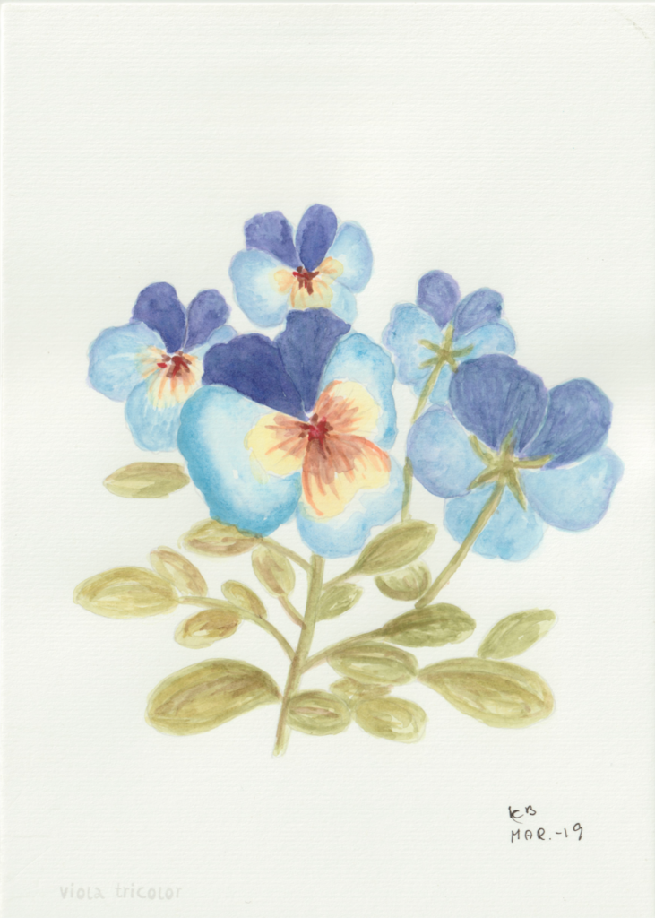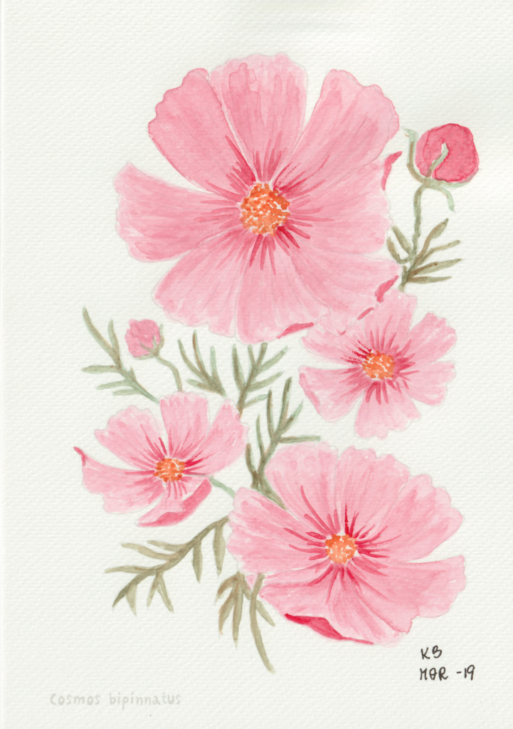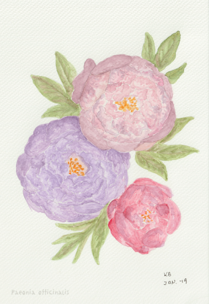 I en periode var jeg gået en smule træt i landskabsbillederne og ville gerne hvile mig med at male noget andet. Så faldt jeg over en lille akvarelmalebog i en Tiger-butik. Og så malede jeg blomsterbilleder, når jeg sad med hyggeholdet på Gundorfslund.