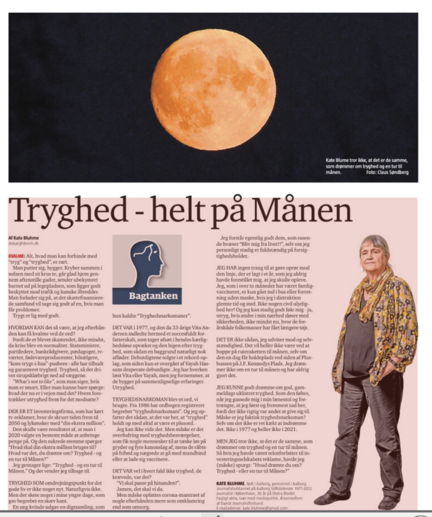Jeg gentager lige: “Tryghed – og en tur til månen.” Og det vender jeg tilbage til.
