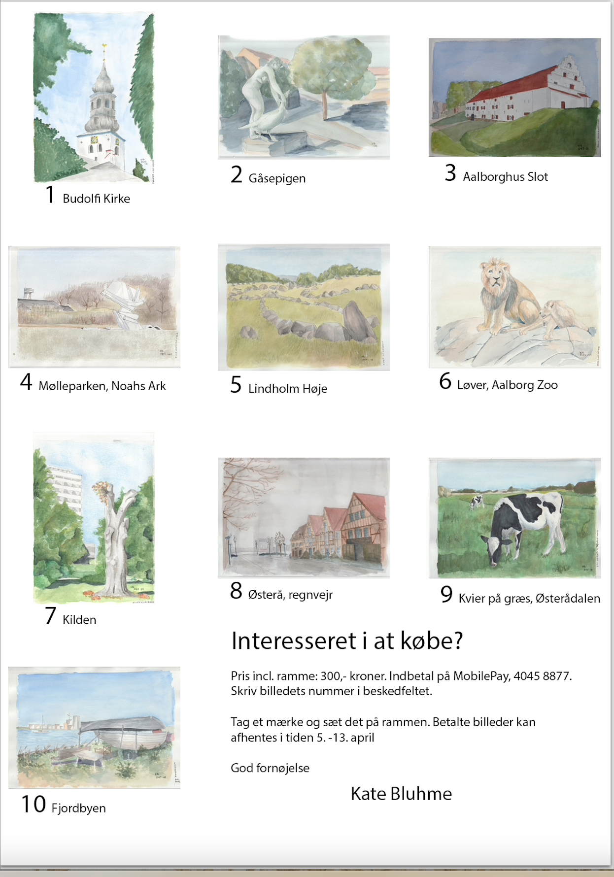 I stedet for fik jeg for nogle år siden min gode og teknikkyndige ven Frank til at lave en hjemmeside til mig. Og her har jeg i nogle år med mellemrum lavet opslag med akvareller, som jeg – især via Facebook – har inviteret folk til at se. Det har været ret hyggeligt, og jeg fortsætter med at lave sådanne opslag, måske lidt sjældnere end til at begynde med. Men der er altid åbent i galleriet Bluhmes verden på www.katebluhme.dk.
