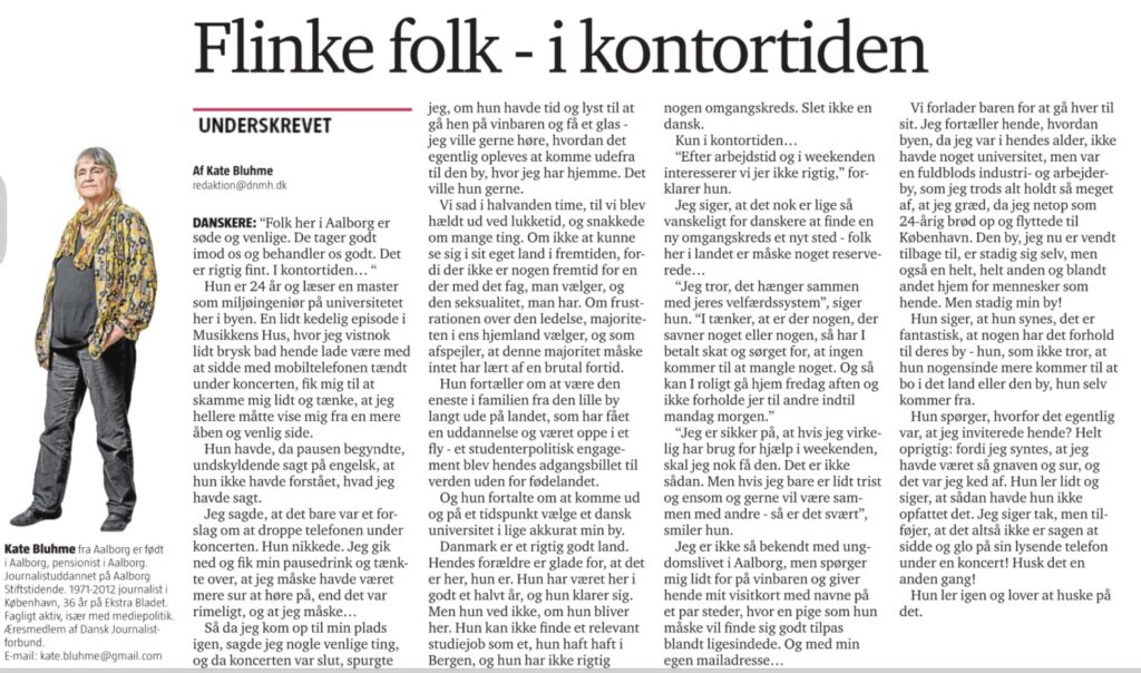 “Folk her i Aalborg er søde og venlige. De tager godt imod os og behandler os godt. Det er rigtig fint. I kontortiden… “